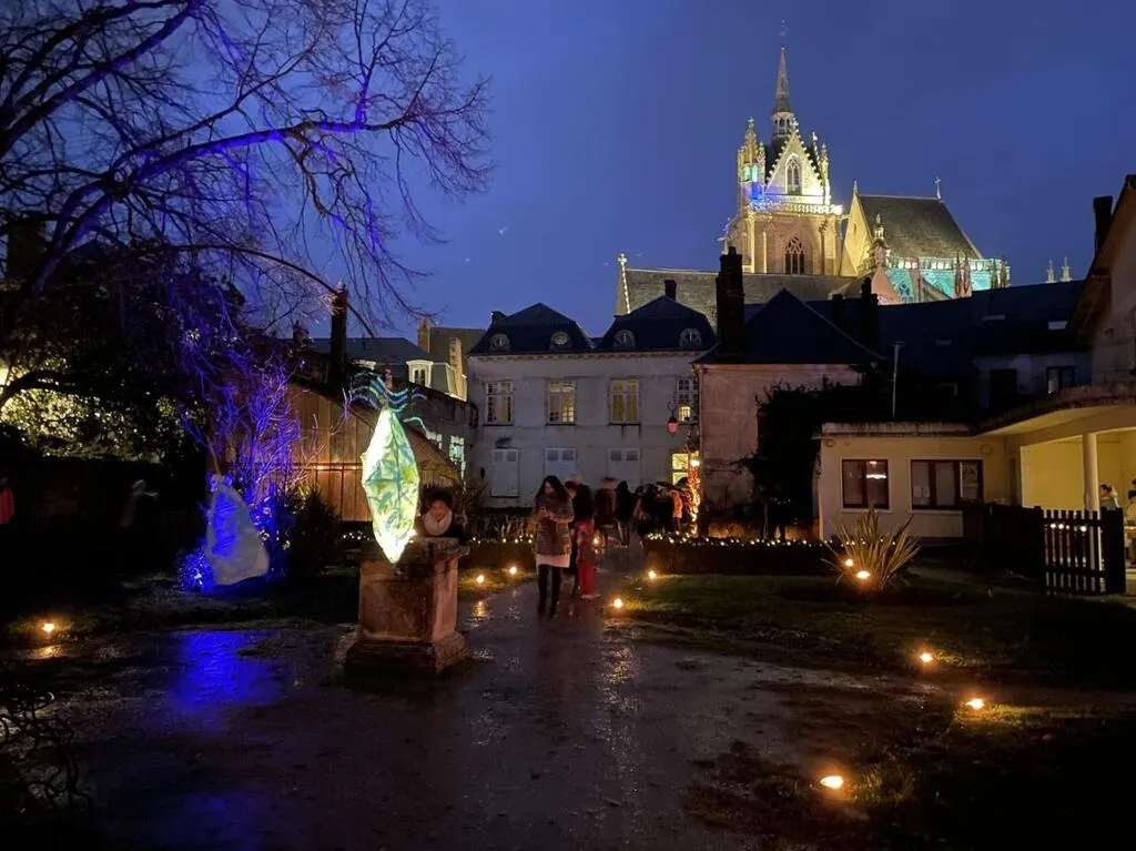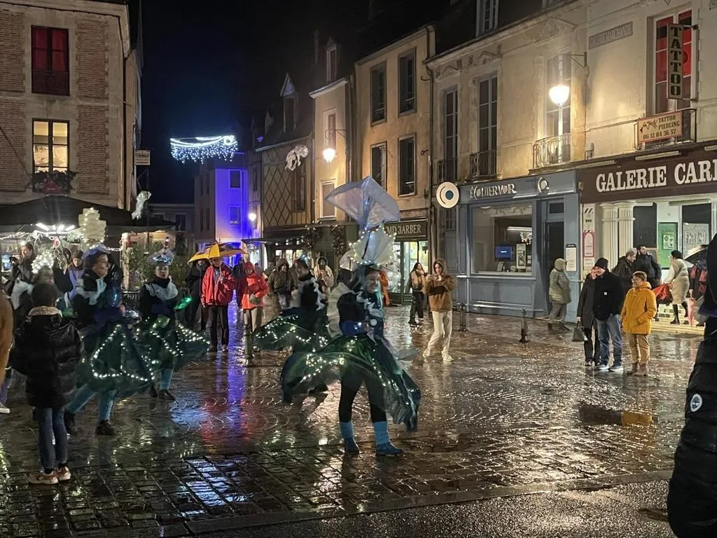 En plein centre-ville de La Ferté-Bernard, la Nuit des couleurs était lancée ce samedi 7 décembre 2024. Malheureusement, la pluie était de la partie et a découragé nombre de Fertois d’assister à la fête.