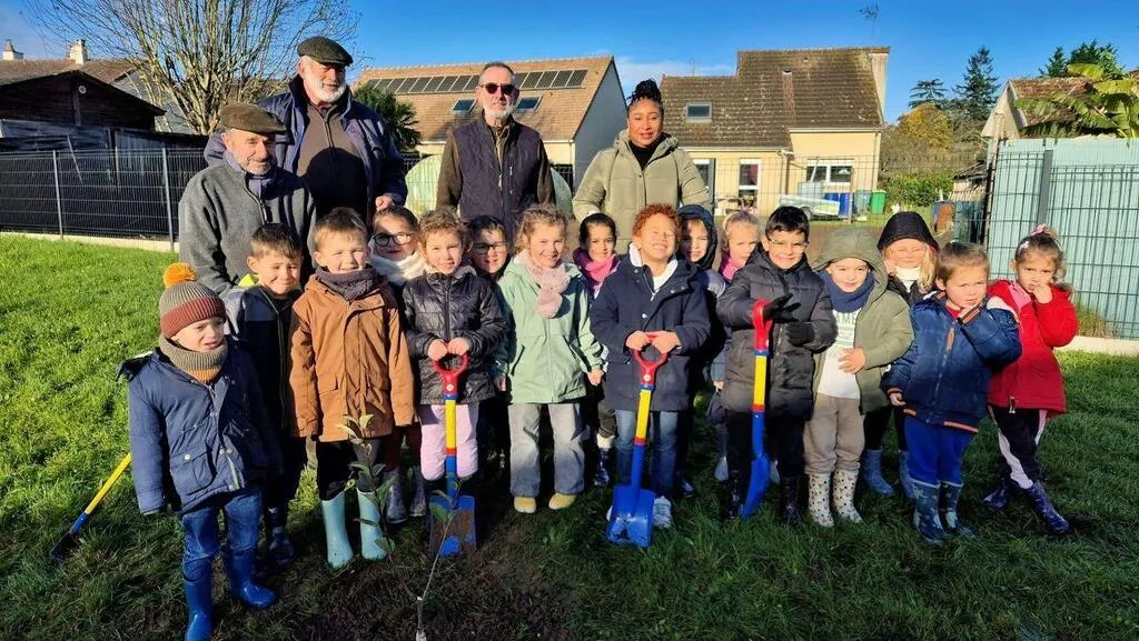 L’association « Les Croqueurs de pommes Maine-Perche » a offert des pommiers à l’école maternelle de Champagné (Sarthe) et est venue les planter avec les élèves des six classes.