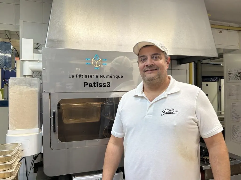 Depuis novembre 2025 à La Flèche (Sarthe), Jérôme Guibert utilise une imprimante 3D pour réaliser des formes originales de pâtisseries. © Ouest France