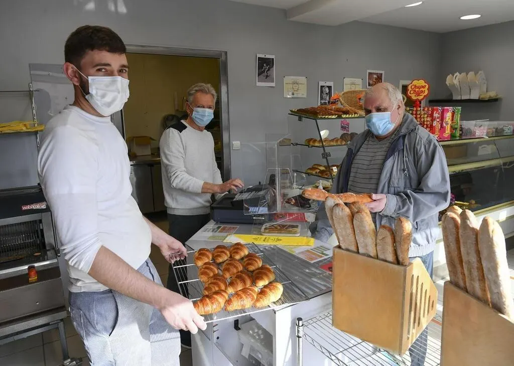Mézières-sur-Ponthouin, mercredi 17 mars 2021. Tandis que Julien Grosselle fabrique pains, viennoiseries et pâtisseries, ce jour-là , c’est Joël Hubert, bénévole de l’association Pour la sauvegarde des commerces macériens (PSCM), qui sert les clients. © Le Maine Libre – Yvon LOUÉ