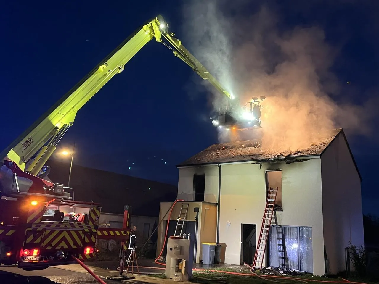 Un feu d’habitation s’est déclaré à Changé, ce dimanche 9 novembre 2025. © Ouest-France