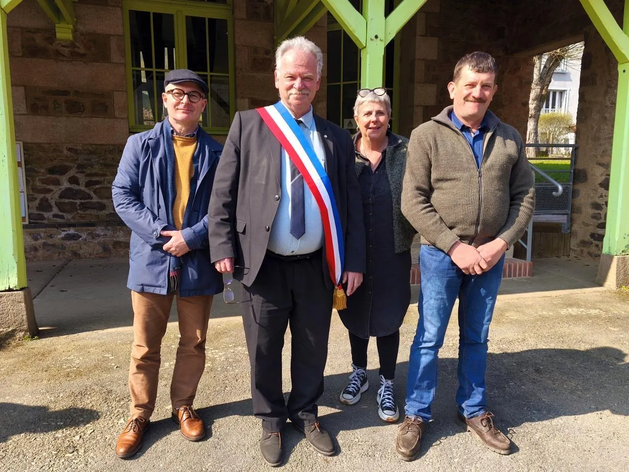 Pascal Delpierre, le maire en compagnie de ses adjoints Patrick Mahoué à gauche, Pascale Mignau Boisgallais et de Damien Hélouin. © Le Maine Libre