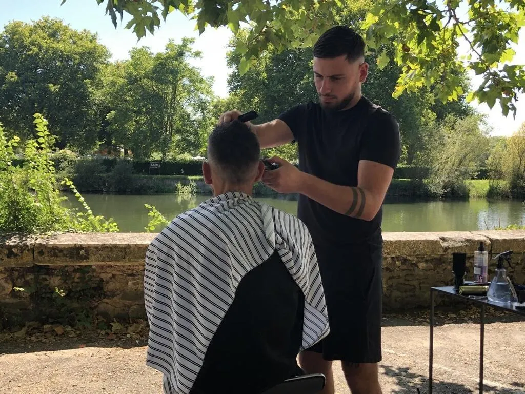 Comme ici avec Geoffrey, Antonin Chassevent, un jeune coiffeur de 20 ans, employé à La Flèche (Sarthe), a décidé d’offrir des coupes de cheveux gratuites aux sans-abri. © Ouest-France