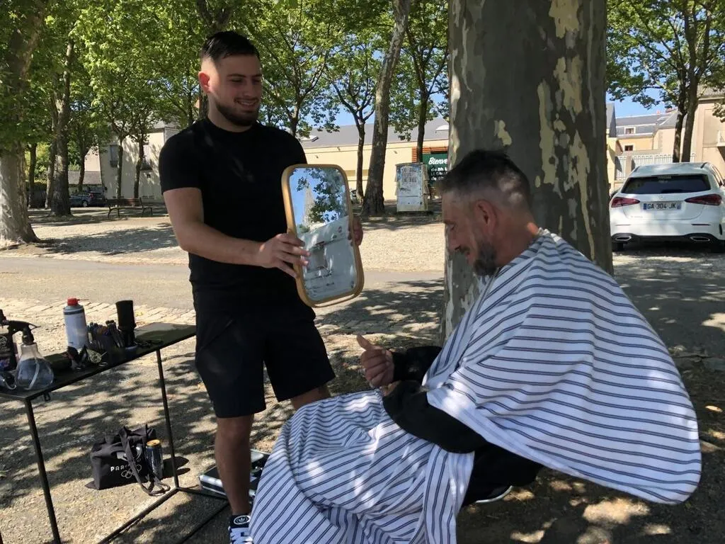 Antonin Chassevent, un jeune coiffeur de 20 ans du salon Krys barber, situé dans le centre-ville de La Flèche (Sarthe), offre des coupes gratuites aux sans-abri, directement dans la rue. « Chacun doit aider à sa manière », explique le coiffeur.
