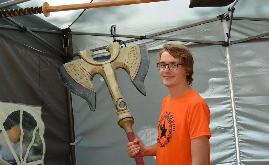 Baptiste Schneider, âgé de 24 ans, est amateur de cosplay. Le jeune homme, originaire du Mans (Sarthe), s’est récemment lancé dans la fabrication d’armes factices et de costumes. L’année prochaine, il tiendra un stand au Festival Rock en Braye, à Loir-en-Vallée.