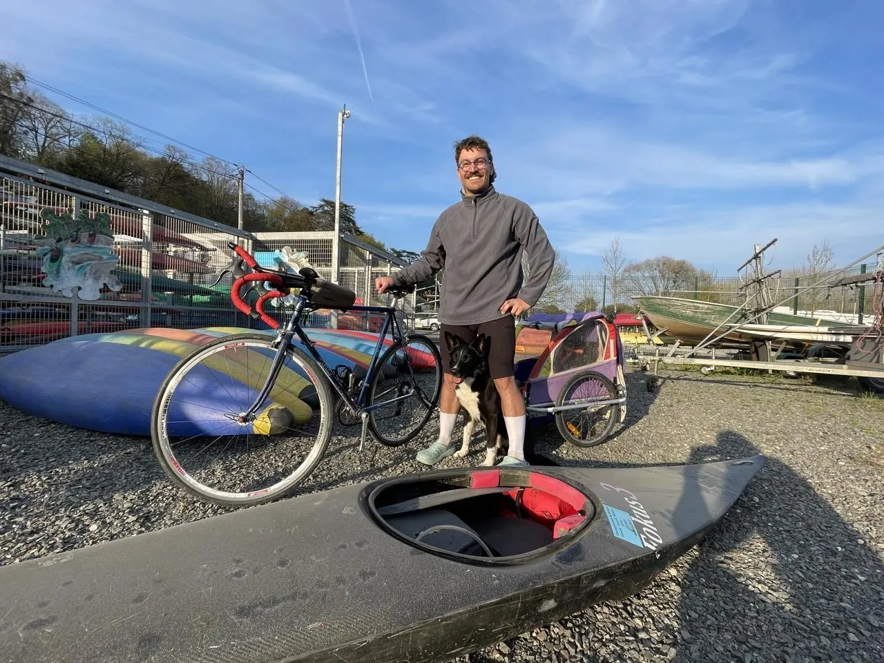 Samuel Vallienne et Zucra, à leur arrivée au club de kayak à Sablé, le vendredi 20 mars. © Le Maine Libre