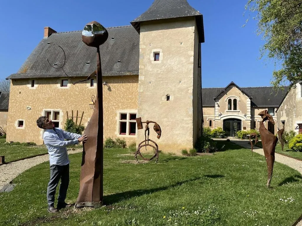 Les sculptures de Lionel Tonda, mises en valeur dans le parc de la galerie Artistic Red Dot, fondée à Parcé par Eric Dos Santos. © Le Maine Libre