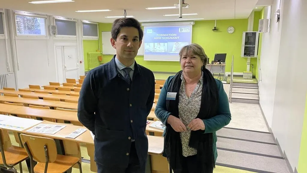Vinciane et Tifenn, étudiantes à l’école d’infirmières Ifsi à La Flèche (ici pendant les portes ouvertes du mercredi 22 janver), terminent leurs études en 2025. © Le Maine Libre