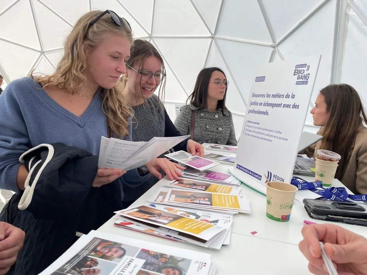 Elles aiment « le droit et les enfants ». Au Big Bang Emploi de la région Pays de la Loire, ce vendredi 17 octobre sur le circuit Bugatti, au Mans (Sarthe), Laly et Louna, en première année de droit, ont filé tout droit au stand ...