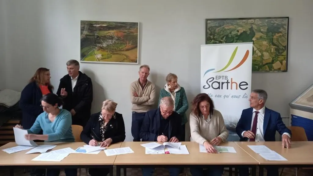 Comment économiser l’eau d’arrosage de la ville, désimperméabiliser les sols, prévenir les inondations ? C’est tout l’enjeu de cette convention signée le mardi 11 mars 2025 à Saint-Léonard-des-Bois (Sarthe) par les élus de trois communes et d’une communauté de communes de Sarthe, du Maine-et-Loire et de Mayenne avec des partenaires publics et privés.