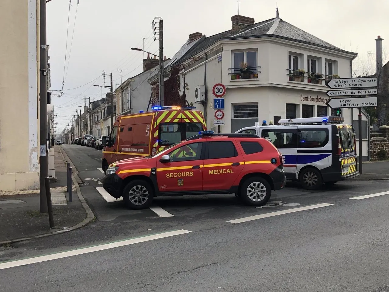 Les accidents sont fréquents avenue Jean-Jaurès, au Mans (Sarthe). Ici les pompiers et les forces de l’ordre après un accident mortel survenu en novembre 2023, sur cet axe. © Archives Ouest-France
