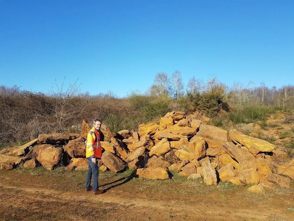 Philippe Trifault, entrepreneur en bâtiment de Marolles-les-Braults, a racheté cette carrière il y a quelques années. « Sa pierre de roussard a été utilisée récemment par différentes entreprises pour restaurer le mur de l’église du cimetière à Thiron-Gardais ; du sable et du roussard pour un château à Châteaubriant, par exemple. » © Ouest-France