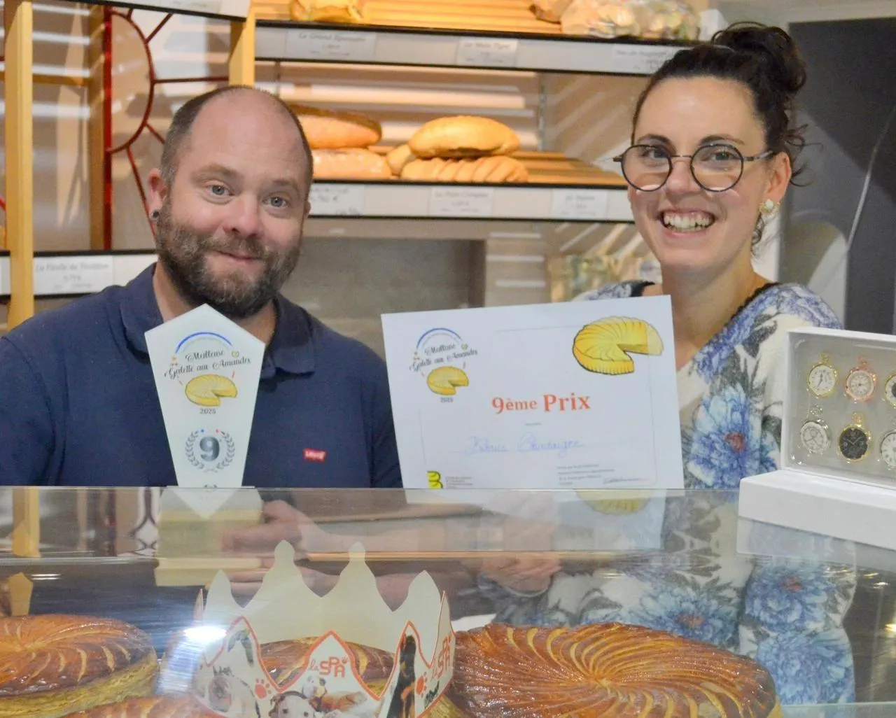 Fabrice et Stéphanie Chadaigne, avec leur récompense pour leur frangipane, en janvier 2025. © Archives ML