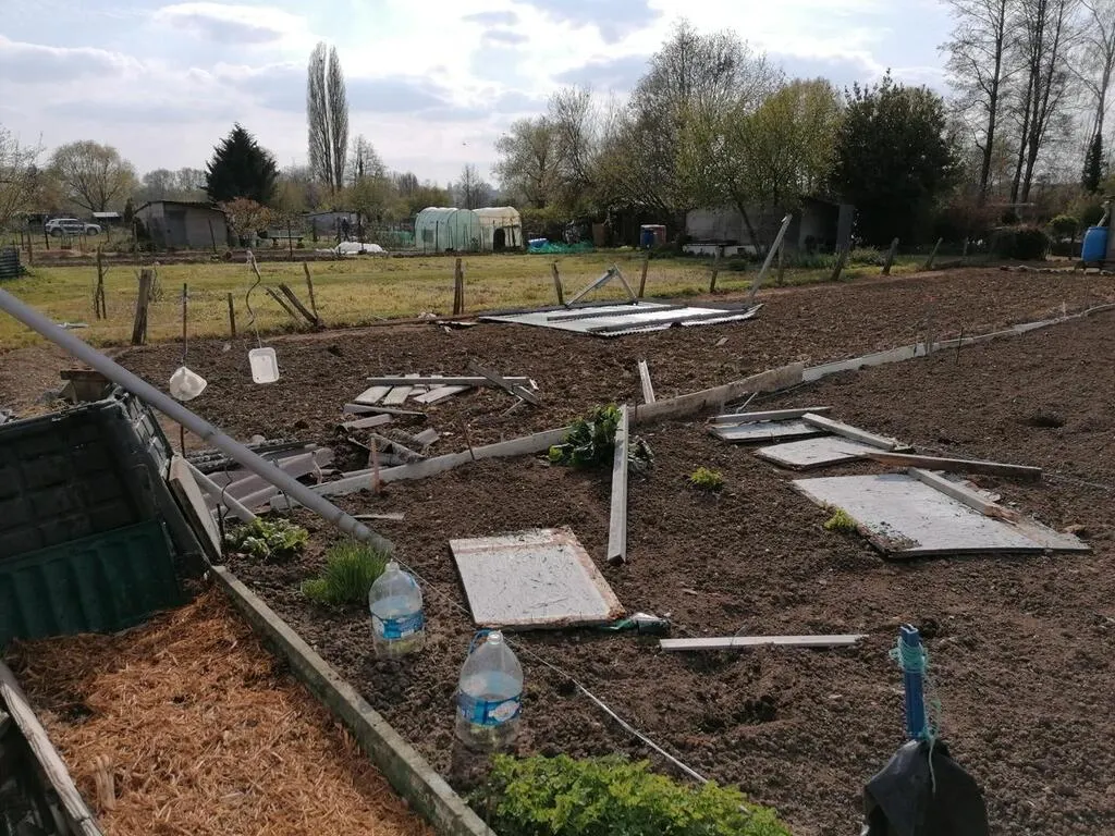 Le coup de vent emporte sur son passage la toiture de la cabane installée sur l’une des parcelles ainsi que d’autres objets comme des tunnels de jardin. On les a vus voler à la hauteur des peupliers… On ne sait pas où ils ont atterri par contre