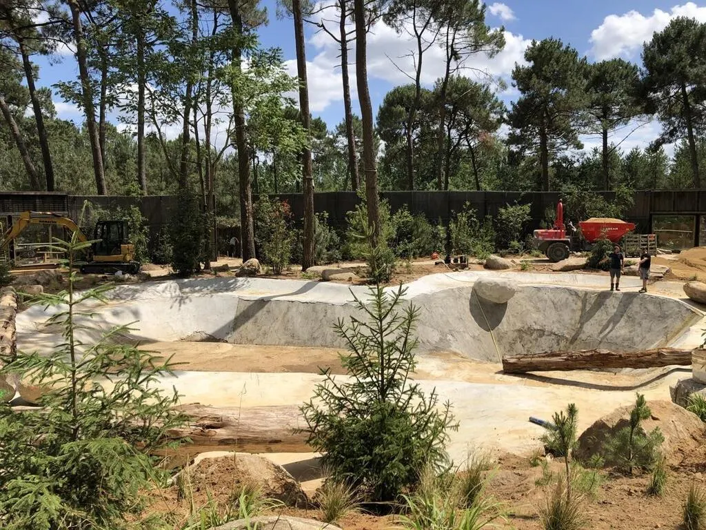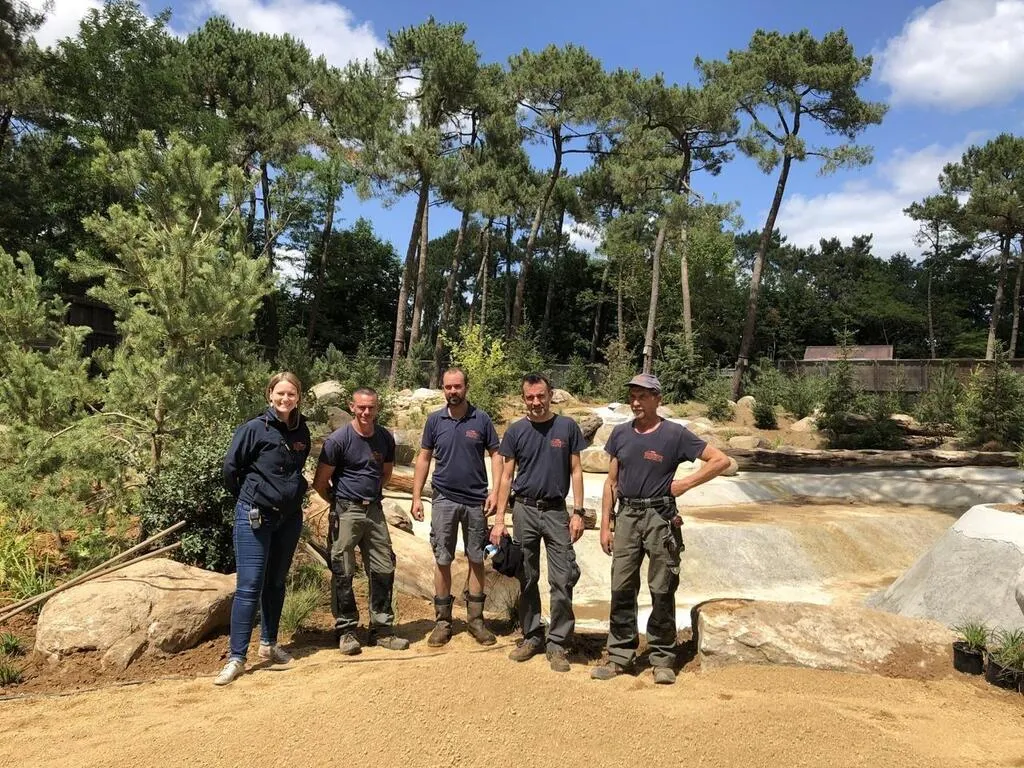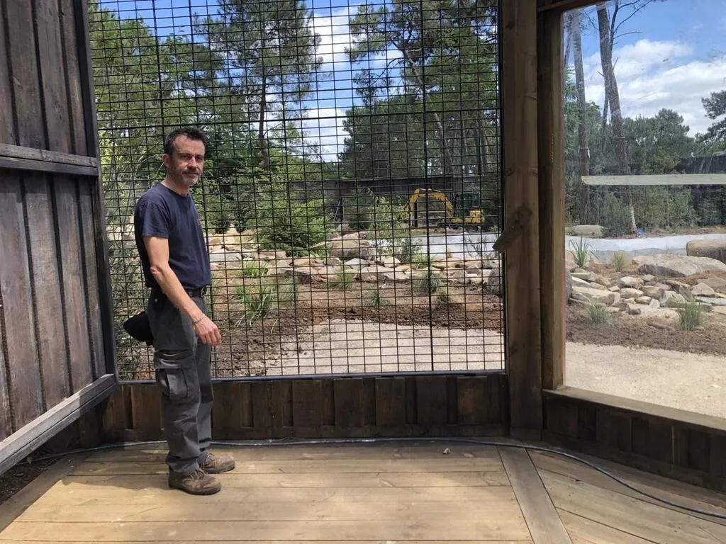 On s’active aux derniers préparatifs dans le nouvel habitat des ours. Il comporte un grand bassin et de nombreux végétaux.. OUEST-FRANCE