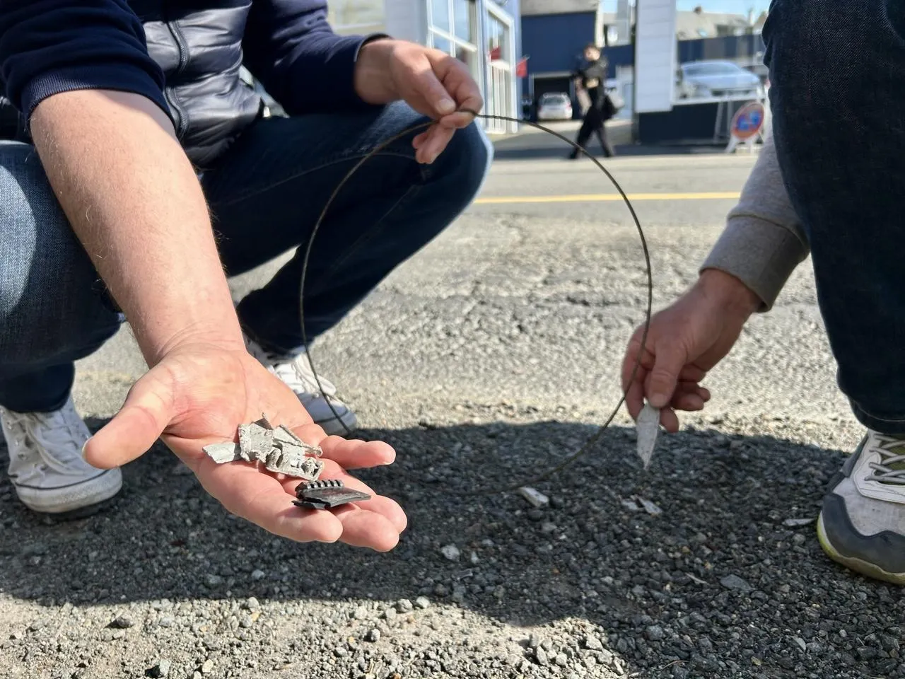 De nombreuses petites pièces métalliques jonchent la chaussée de l’avenue Bollée, en travaux. © Le Maine Libre