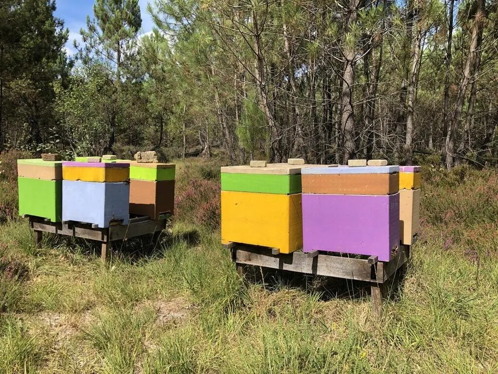 Les ruches du Gaec Dugué ont la particularité d’être toutes colorées. © Gaec Dugué