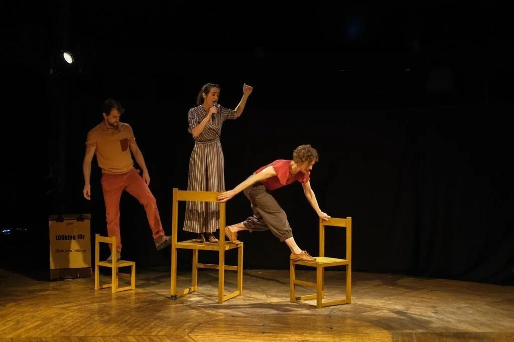 Sur scène, les chaises s’animent au son d’une voix cristalline. Chloé Cailleton, chanteuse improvisatrice, donne vie à ces objets inanimés. Elle donne un rythme, tantôt calme, tantôt énergique, à ses deux camarades : Katell Le Brenn et David Coll Povedano, ...