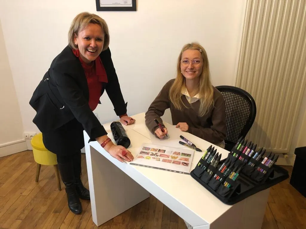 Grâce aux séances d’art-thérapie de Fabienne Malhaire Boulanger, Ameline est parvenue à maîtriser ses crises d’angoisse qui l’empêchaient de sortir de chez elle. © Photo Le Maine Libre