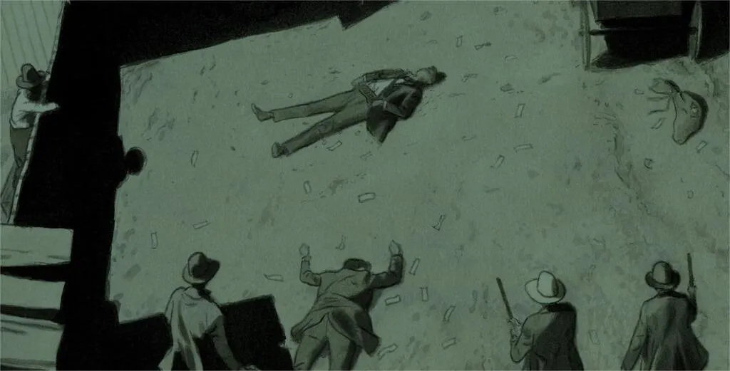 De ce premier album d’un diptyque publié chez Glénat, il ressort une lourde mélancolie. C’est la tristesse d’un frère Dalton face à la réputation qui colle aux bottes de sa famille hors-la-loi. Les dessins qui sont l’œuvre du Manceau Emmanuel Bazin n’y sont pas étrangers. Ses plans larges qui soulignent la solitude d’Emmett Dalton aussi bien que la mise en scène des addictions de ce dernier confèrent une ambiance lourde à cette histoire que l’on se plaît à découvrir. Les teintes verdâtres de l’album accroissent ce sentiment.