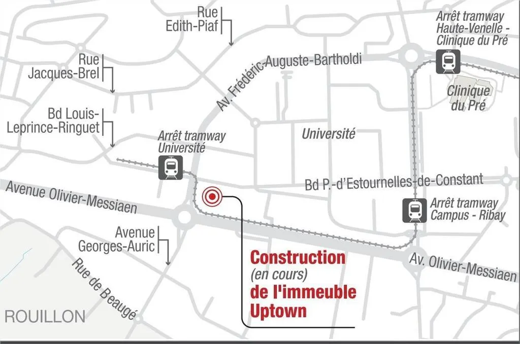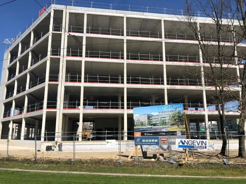 À l’angle des avenues Messiaen et Bartholdi au Mans, quartier Université, l’entreprise Lazard group construit un immeuble de bureaux baptisé Uptown, qui sera livré dans le courant du printemps 2022.