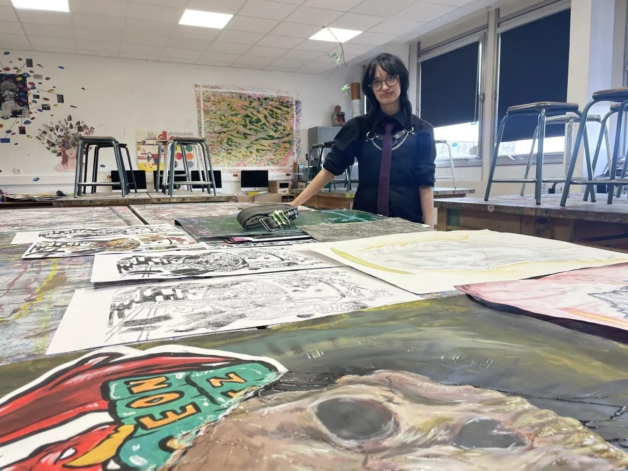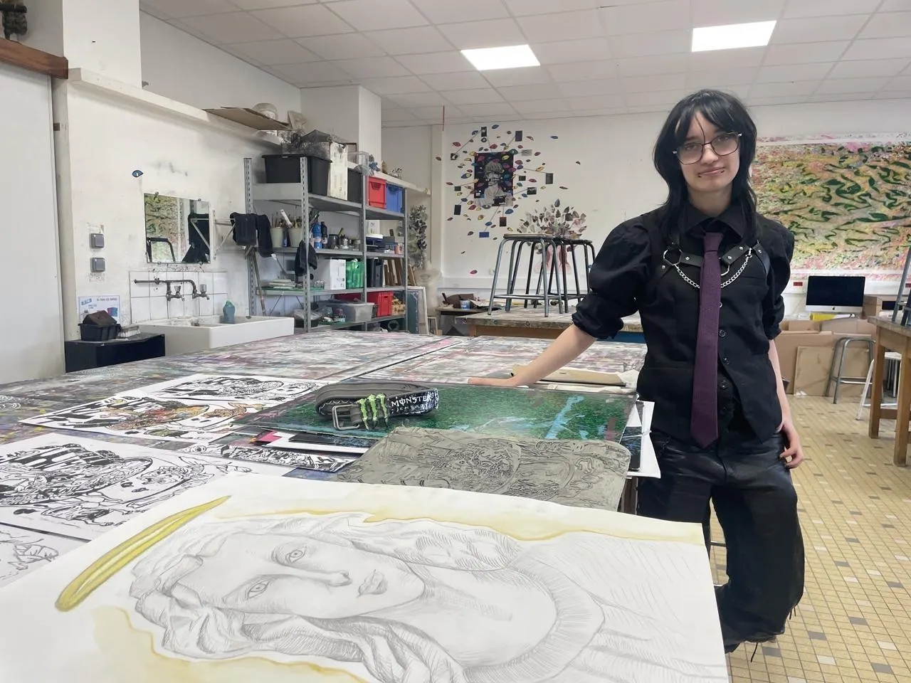 Hoshi a 17 ans. Scolarisé au lycée Marguerite-de-Navarre, à Alençon (Orne), il passe au moins neuf heures par semaine dans sa classe d’art. Une passion qui lui est venue très tôt, et qu’il a développée sans prendre de cours. Dessin, argile, gravure, peinture sur textile ou objets en papier mâché, le jeune artiste a appris seul à « tout faire ».