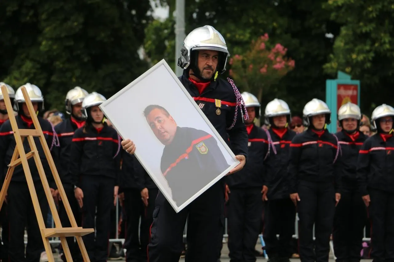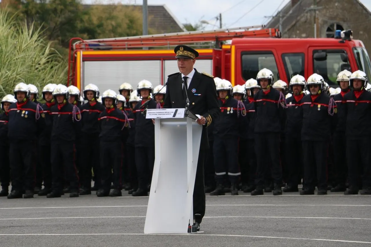 Une cérémonie d’hommage républicain pour Jonathan Moreau, pompier décédé dans l’exercice de ses fonctions, a eu lieu ce mardi 29 juillet 2025 au Lude (Sarthe). © Ouest-France