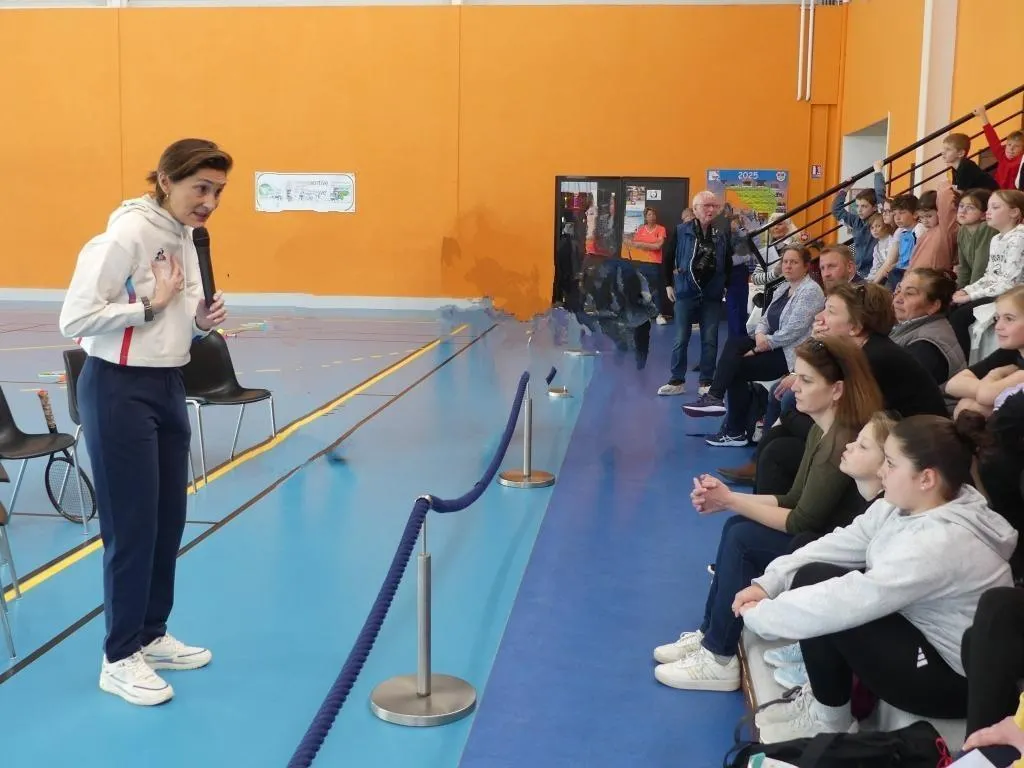 Amélie Oudéa-Castéra, ancienne ministre des Sports, s’est rendue à Vibraye (Sarthe) ce vendredi 4 avril 2025 pour soutenir l’Anille braye tennis et les écoliers dans leur défi coopératif visant à lutter contre le harcèlement.