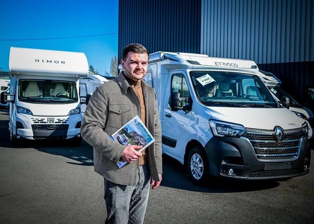 Thomas Sergent, conseiller commercial chez Azur 72 : « Le camping-car standard représente toujours la moitié de nos ventes, même si le fourgon a pris de l’ampleur. » © Le Maine Libre – Yvon LOUÉ