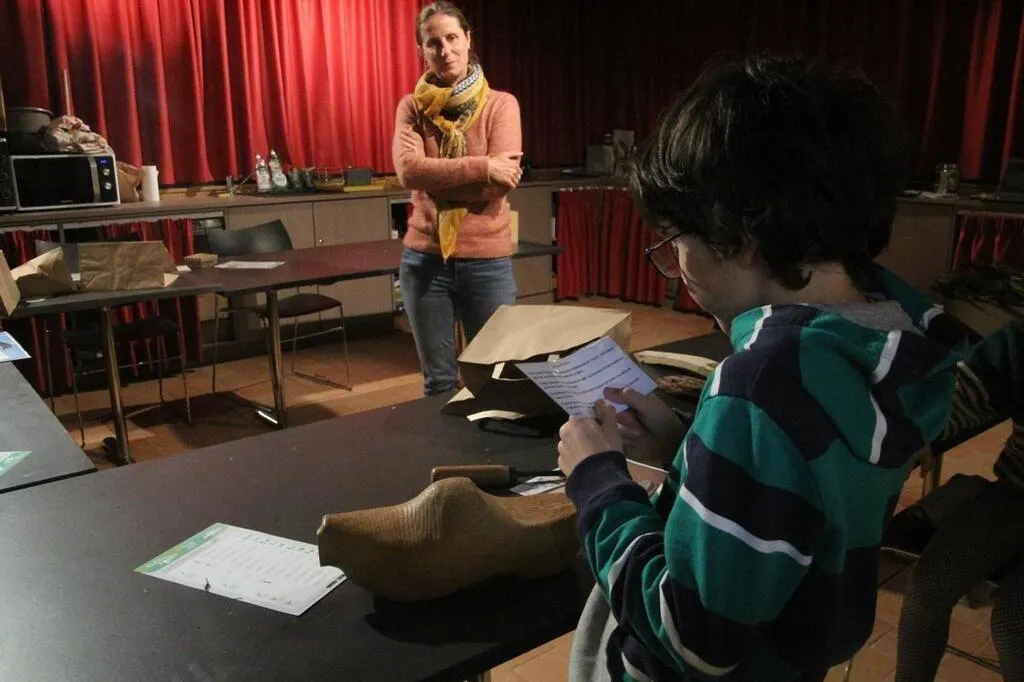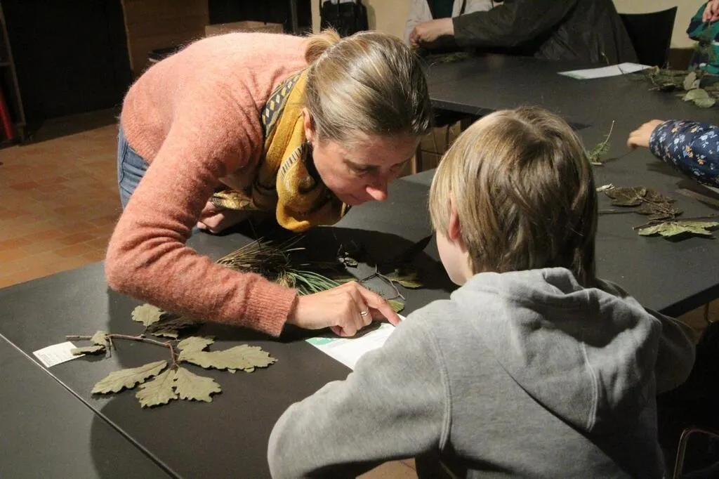 Sandy Servant, responsable de Carnuta, a partagé sa passion de la forêt avec les enfants du Manoir de la Cour, mercredi 24 avril 2024. © Le Maine Libre