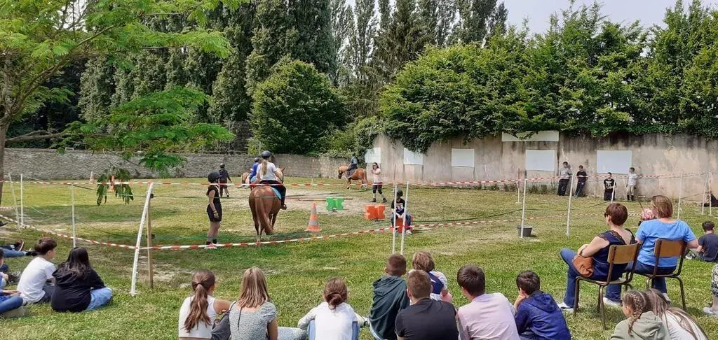 Les élèves de 6e de l’atelier médiation équine ont pu démontrer leur progrès devant leurs parents. © Le Maine Libre