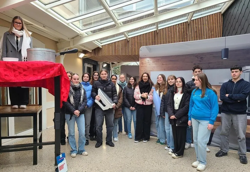 Une classe de Bac pro SAPAT découvre la maison géante. © Le Maine Libre