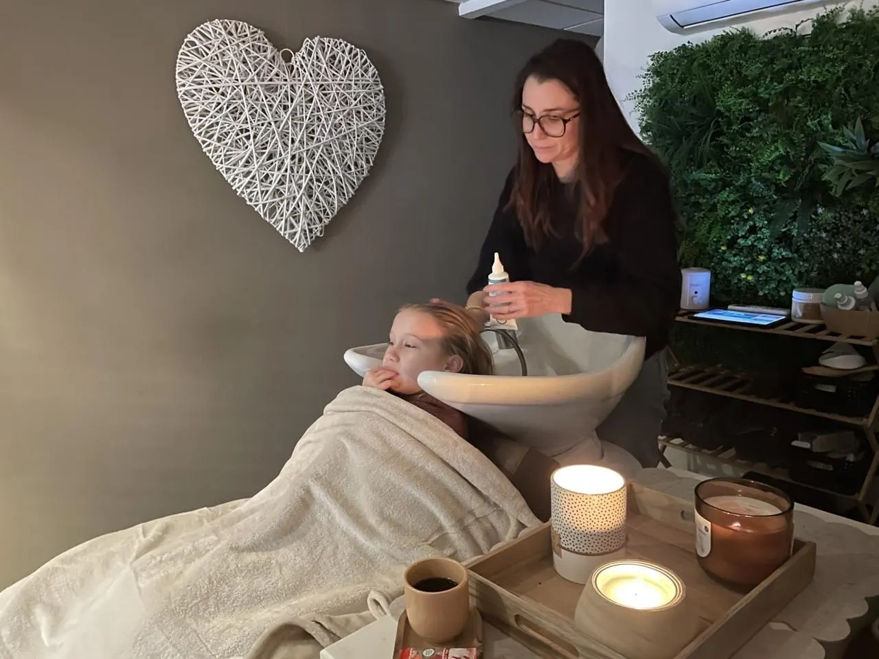 Yuna, 8 ans, a pu profiter d’un instant détente entre les mains expertes de Mathilde Guérin. © Le Maine Libre