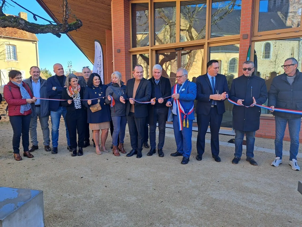 Le maire de Spay, les élus locaux nationaux et départementaux ont inauguré la nouvelle médiathèque, vendredi 21 novembre 2025, en coupant, le ruban tricolore. © Ouest-France