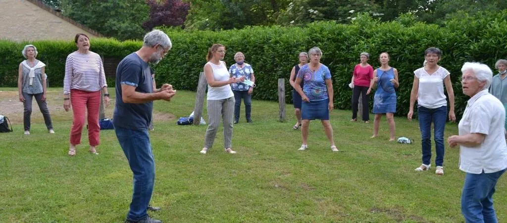 « Amen, he’s got the whole world in his hands ». Sur la pelouse de la salle des fêtes de Louailles, vingt-six voix féminines reprennent en chœur le refrain de ce negro-spiritual. À la baguette, Éric Têtedoie, leur chef de chœur. « Ça fait plaisir de se retrouver » sourit Catherine Ioualalen. « Depuis octobre, c’est la première fois que nous répétons au complet. Un moment que nous attendions toutes avec impatience ». Toutefois, les choristes ne sont pas restées inactives et sont restées en contact. « On répétait via Skype et même à distance, on a appris de nouveaux chants. Une autre façon de travailler, où chacune a dû prendre ses responsabilités et ne plus trop compter sur les autres », confie Catherine. « Le travail a payé », se réjouit leur chef.