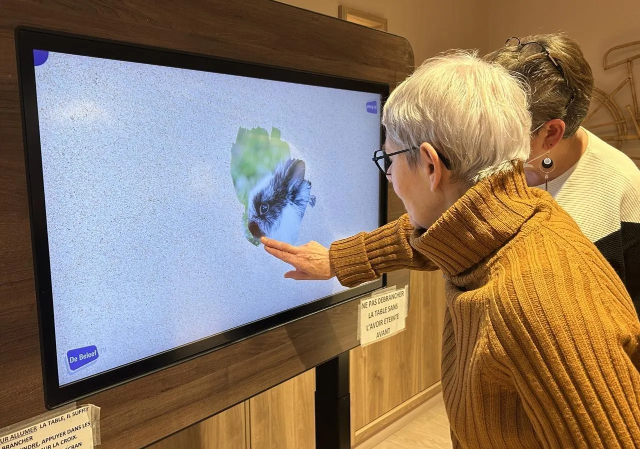 Nicole Breteau fait travailler sa mémoire avec l’écran tactile installé dans l’Ehpad Eugène-Aujaleu du Grand Lucé. © Ouest-France