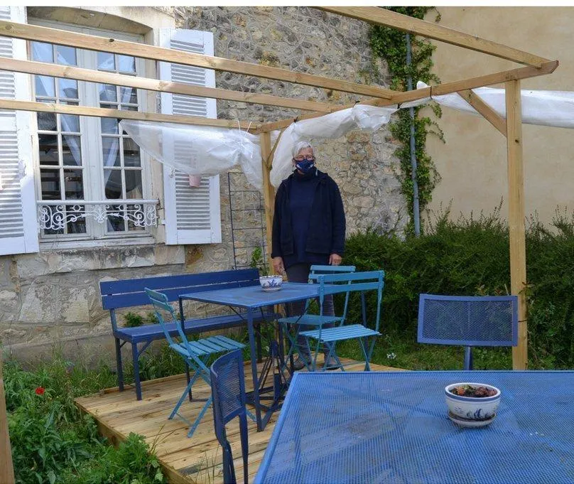 Kathrin Ehlers termine l’aménagement de sa terrasse. © Le Maine Libre