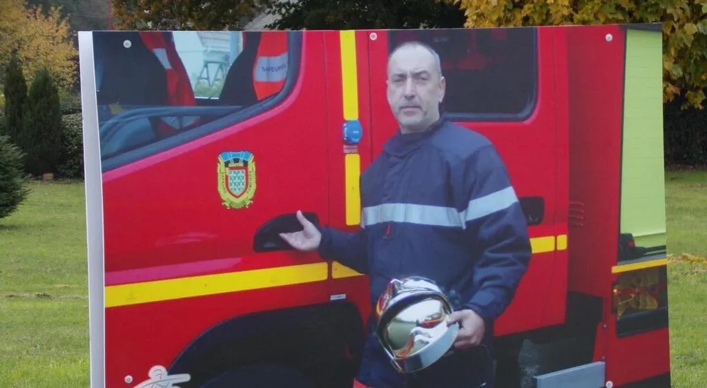 Ce portrait s’affiche à l’entrée de Mansigné, route de Luché-Pringé, et invite au recrutement. © Le Maine Libre