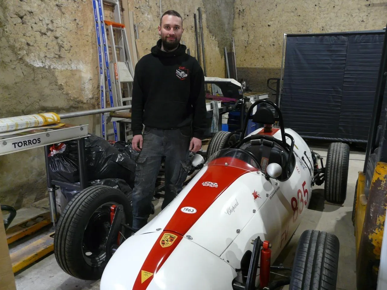 photo  kévin desmet devant une porsche formcar de 1963 pour laquelle il réalise un pot d’échappement sur mesure.  ©  le maine libre 1