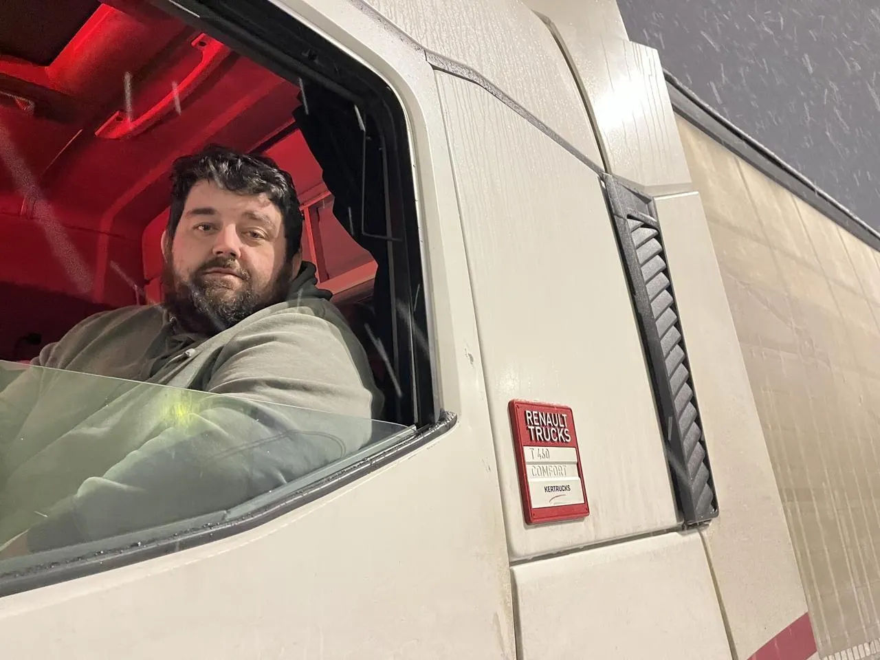Tractant une cuve dépassant le diamètre habituel, Frédéric a lui aussi choisi de s’arrêter car les routes devenaient glissantes.  Je suis en convoi exceptionnel et je n’ai pas le droit de prendre l’A28. Je vais livrer au Havre. Je ne vais pas tenter le diable, mais à 8 h demain matin, si ce n’est pas trop gelé, je repartirai. Il faut y aller cool, dans ces cas-là .Â
