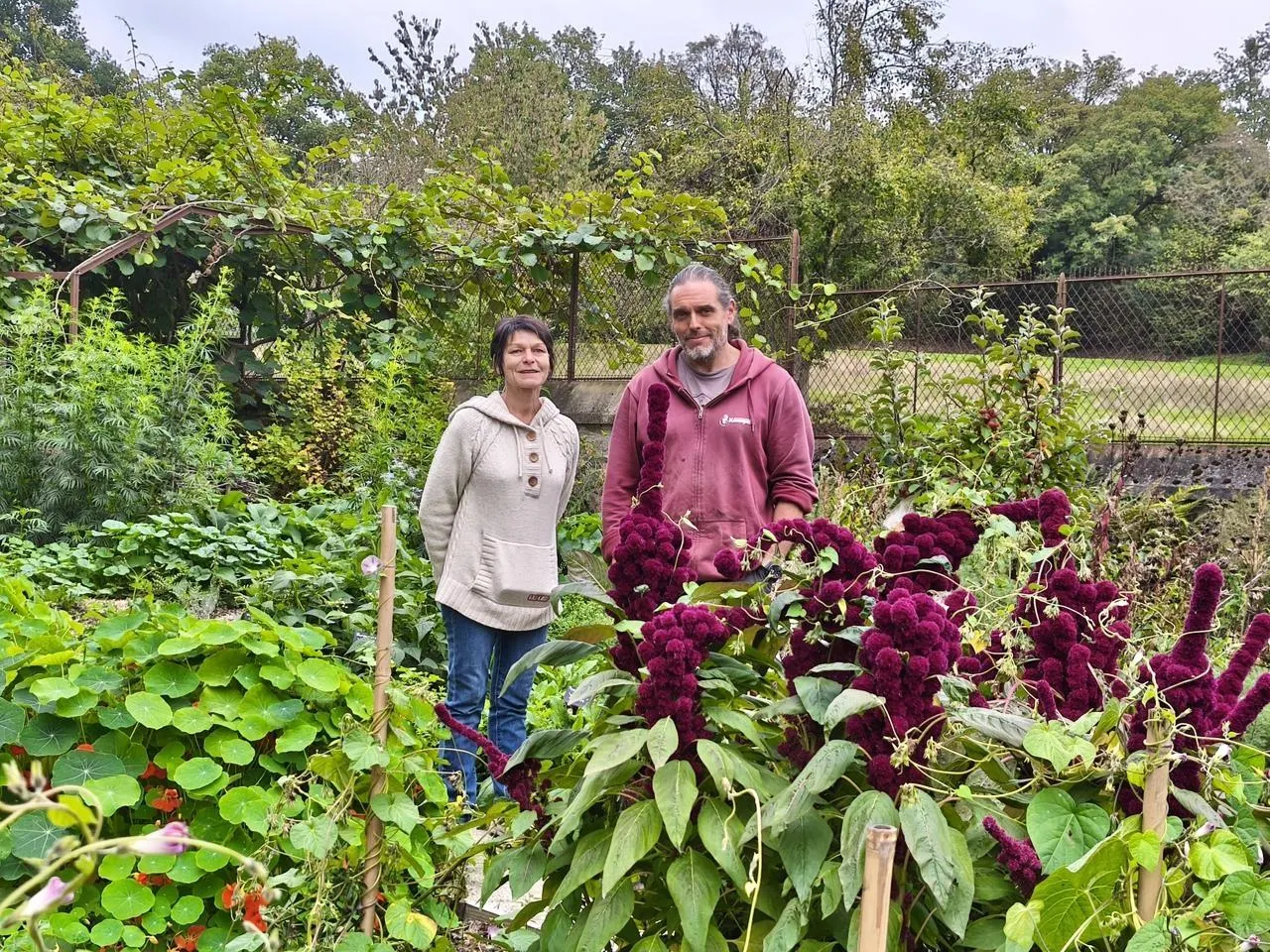 Isabelle Buain et Ronan Mellouet dans le magnifique jardin permacole du Domaine du Gasseau. © Le Maine Libre