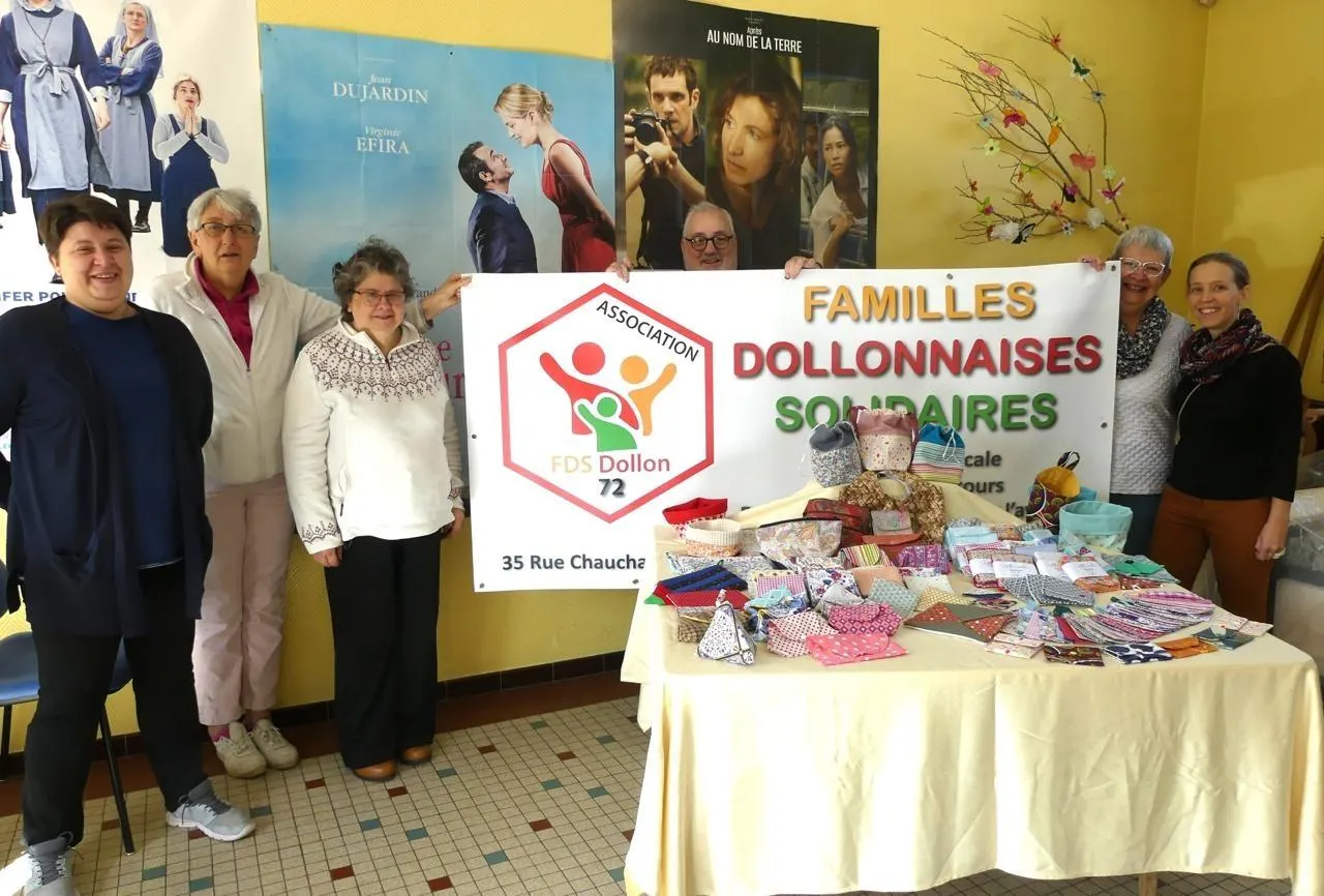 En cet automne 2025, les couturières de Familles Solidaires Dollonnaises (Sarthe) réalisent des pochettes et des lingettes. Elles seront cédées au Rotary qui les vendra au profit de la Ligue contre le cancer.
