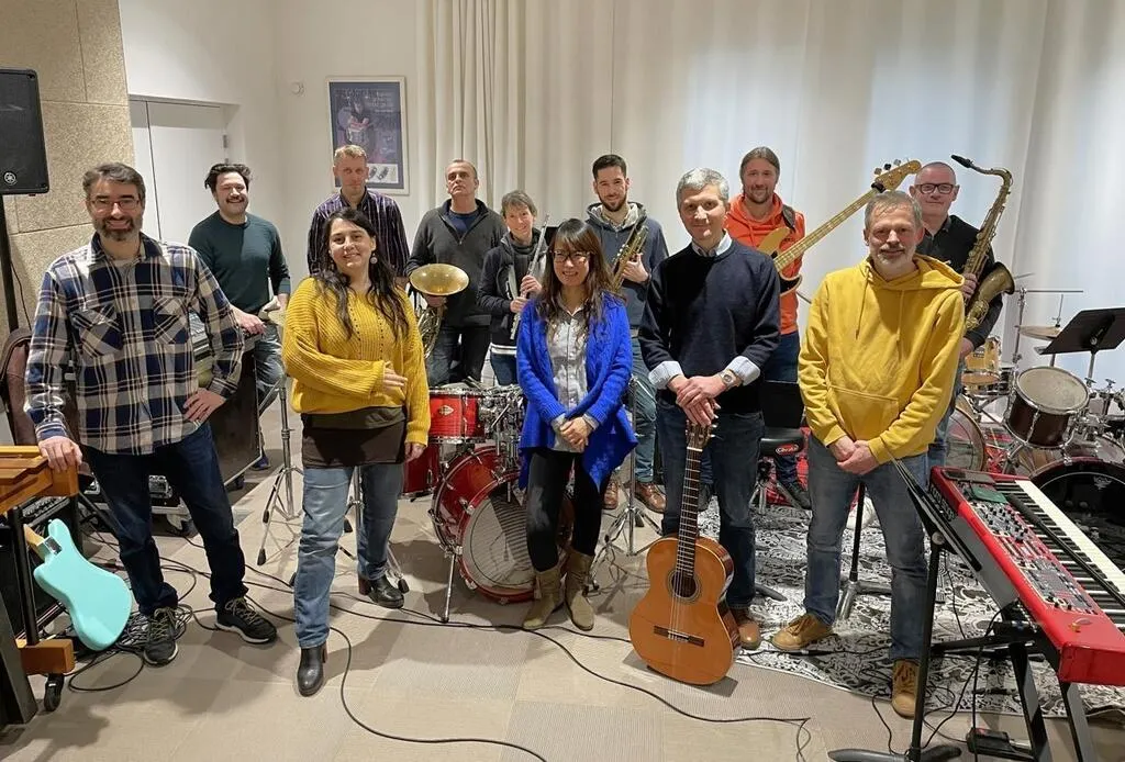 Une partie des professeurs du conservatoire, avant une répétition le 12 février 2025, au pôle culturel L’Apostrophe, à Sablé-sur-Sarthe. © Ouest-France