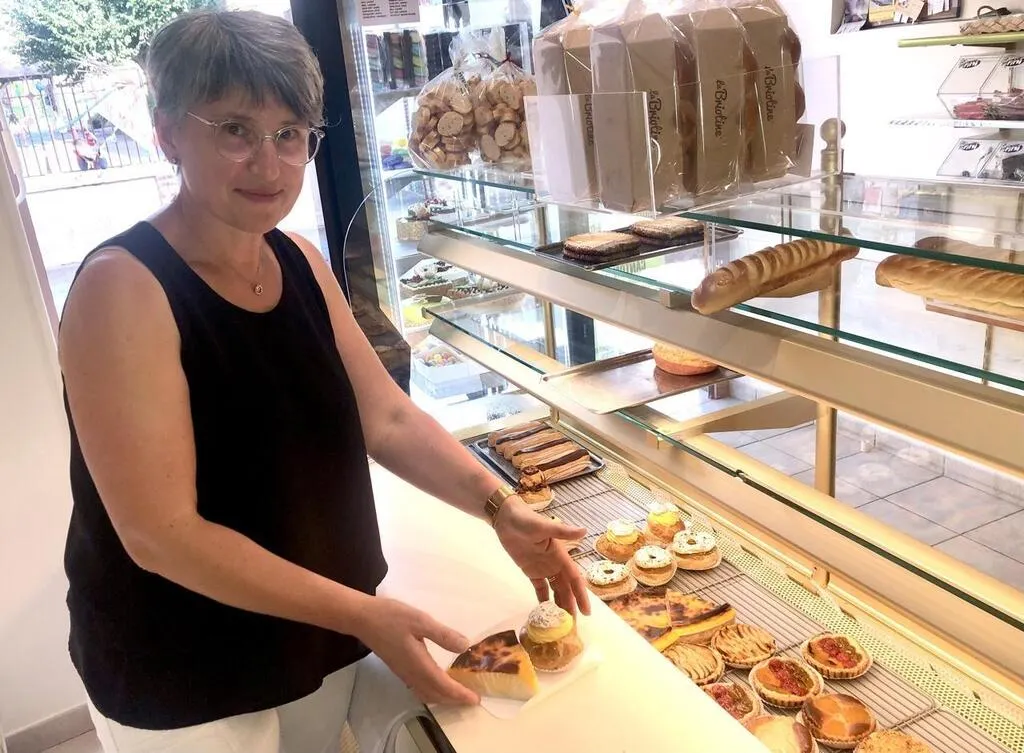 La boulangère Hélène et ses deux « musts » absolus dans les ventes : part de flan et chou à la crème. © Le Maine Libre