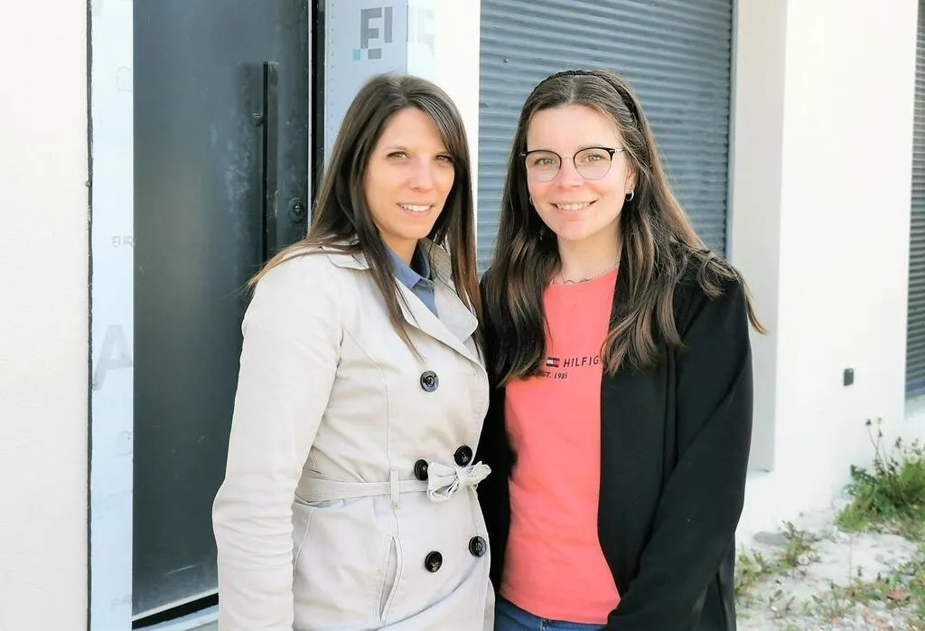 Christina et Pauline (à droite), devant les futurs nouveaux locaux de leur MAM de douze places, au n° 14 du boulevard des Avocats à Moncé-en-Belin. © Le Maine Libre.