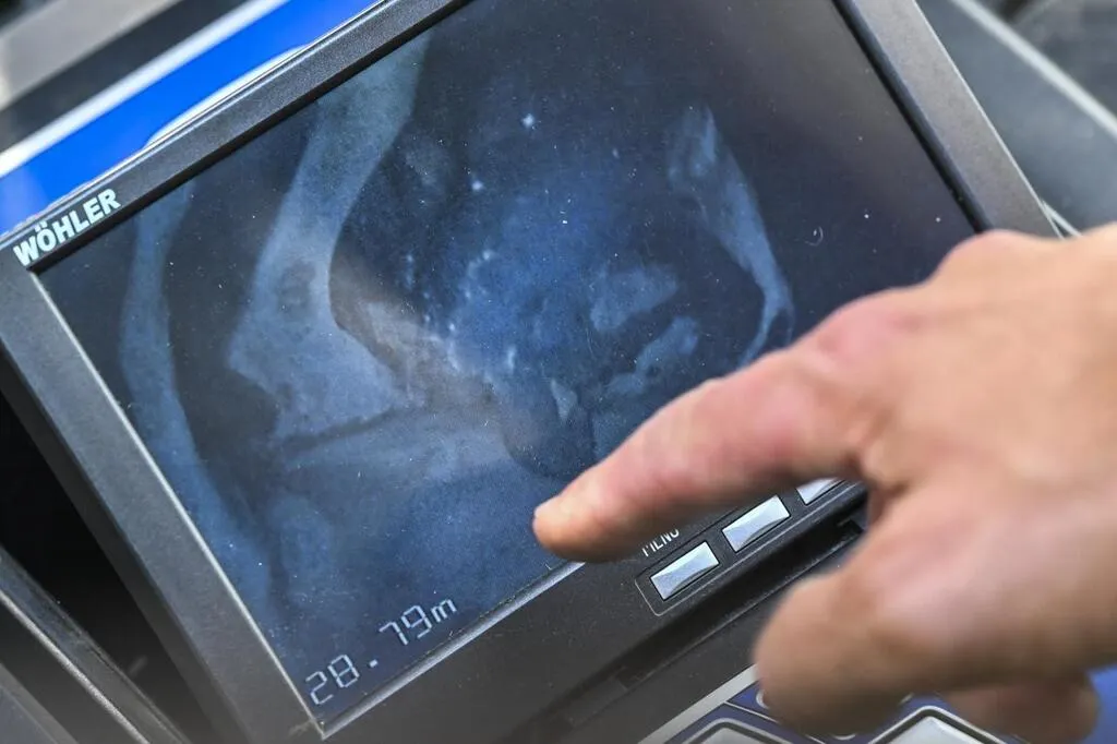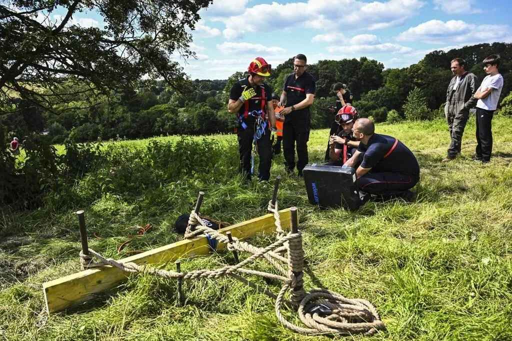 Les pompiers ont utilisé une caméra pour inspecter le fond du trou, profond de 18 mètres. À l’intérieur, le cadavre des huit génisses. © Le Maine Libre - Denis LAMBERT