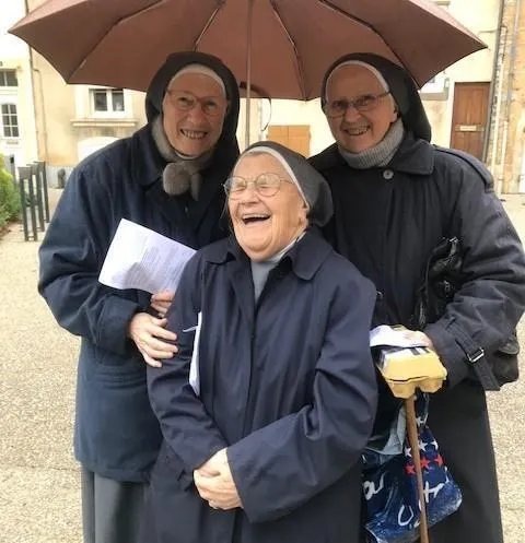 SÅ“ur Marie Reine, SÅ“ur Marie du Rosaire et SÅ“ur Marie Michaël composent la communauté des sÅ“urs de l’Enfant Jésus, installée à Chantenay-Villedieu depuis 104 ans. © Françoise Bellat