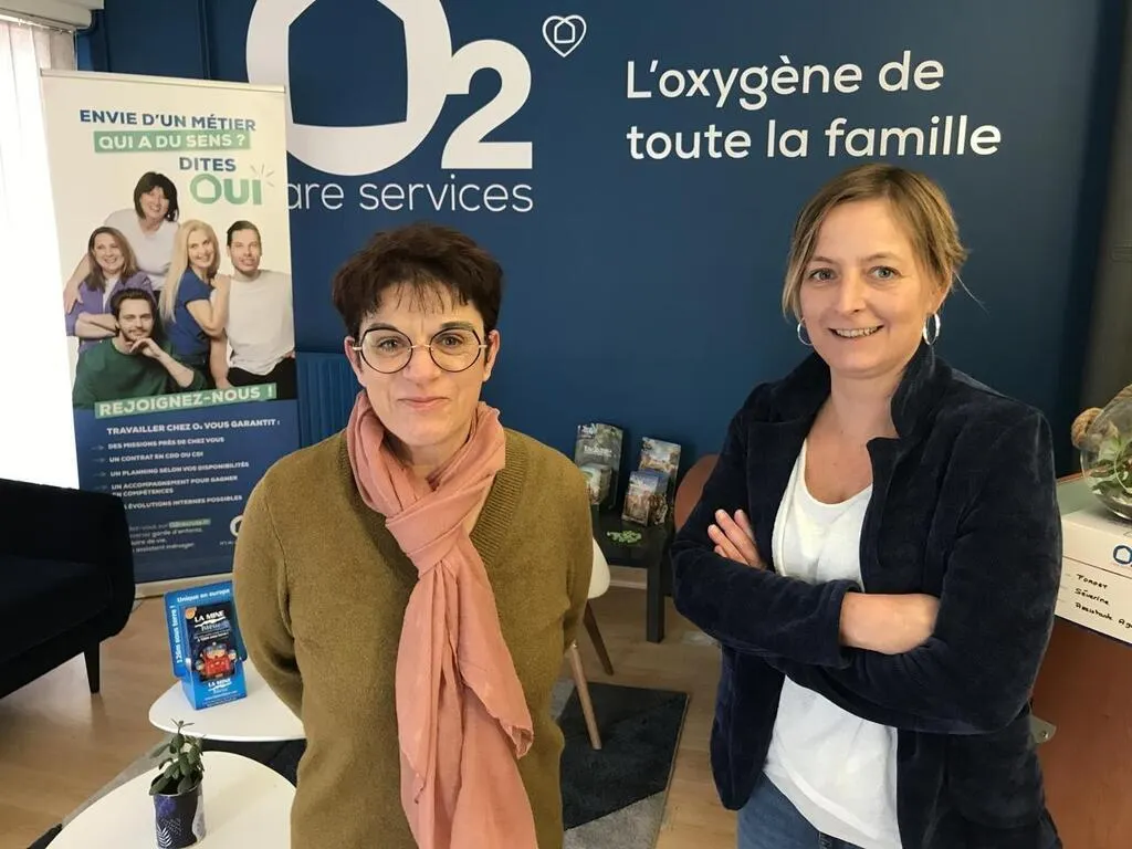 Carole Beldent (à droite), responsable d’agence O2 de La Flèche, avec Sandrine, une employée, le vendredi 1er mars 2024. © Le Maine Libre