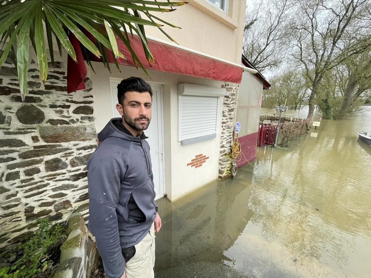 Les deux restaurants d’Aziz Yilmaz, gérant du cul du Moulin, à Champtoceaux (Orée-d’Anjou) et du Hâvre de Paix, à Oudon, ont été inondés : « Forcément, j’ai un peu peur ! » © Ouest-France