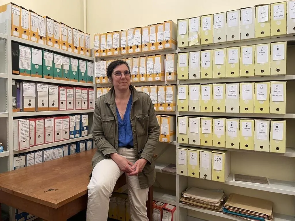 Hélène de Courrèges au milieu des archives et documents collectés depuis 2006 en vue de faire béatifier Dom Guéranger, le Sabolien qui a relancé l’abbaye de Solesmes. © Ouest-France